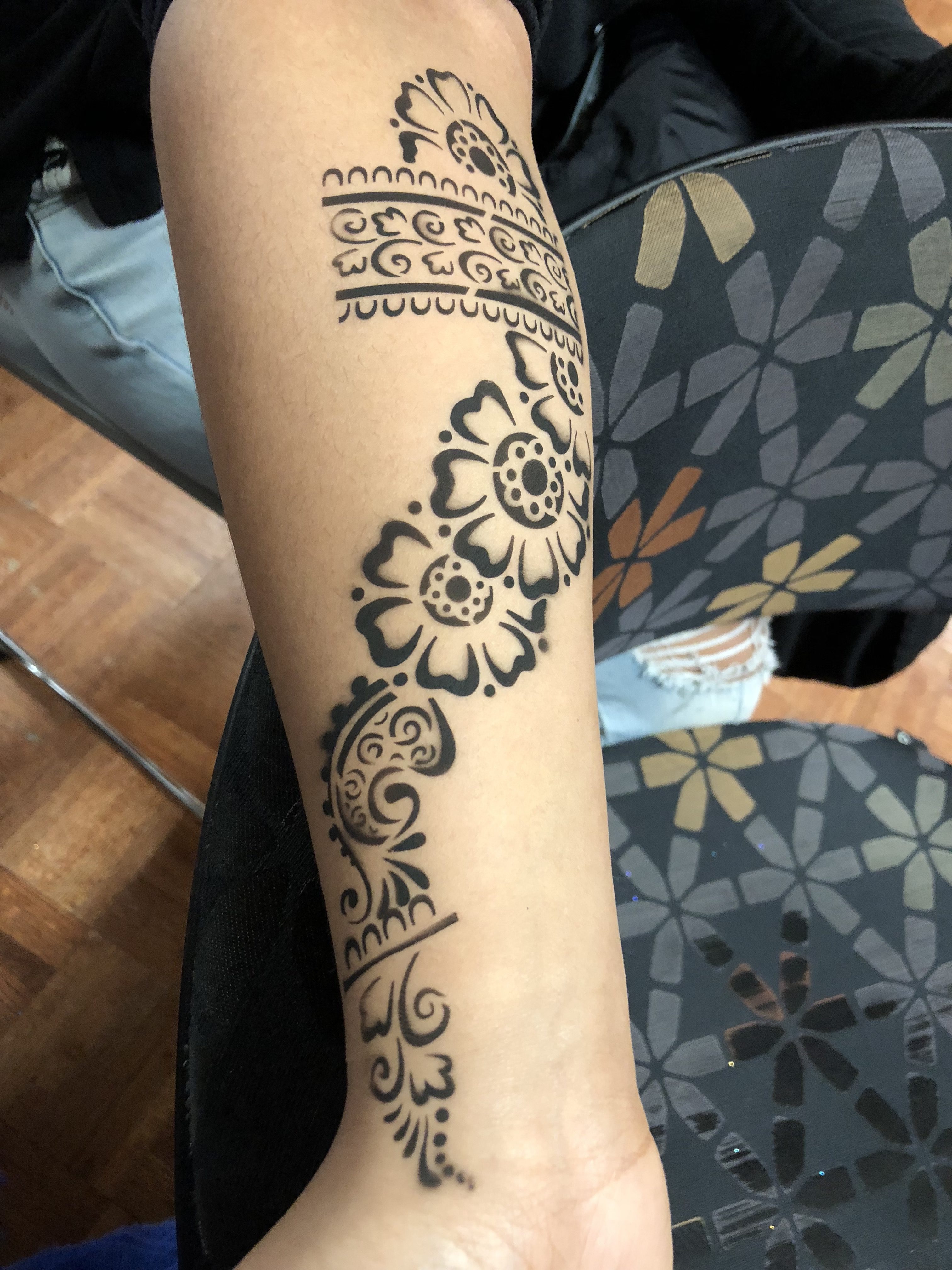• 1.  Airbrush Henna Tattoos can get wet, but DO NOT scrub or rub the tattoo while swimming or bathing. Gently pat the area dry with a towel.