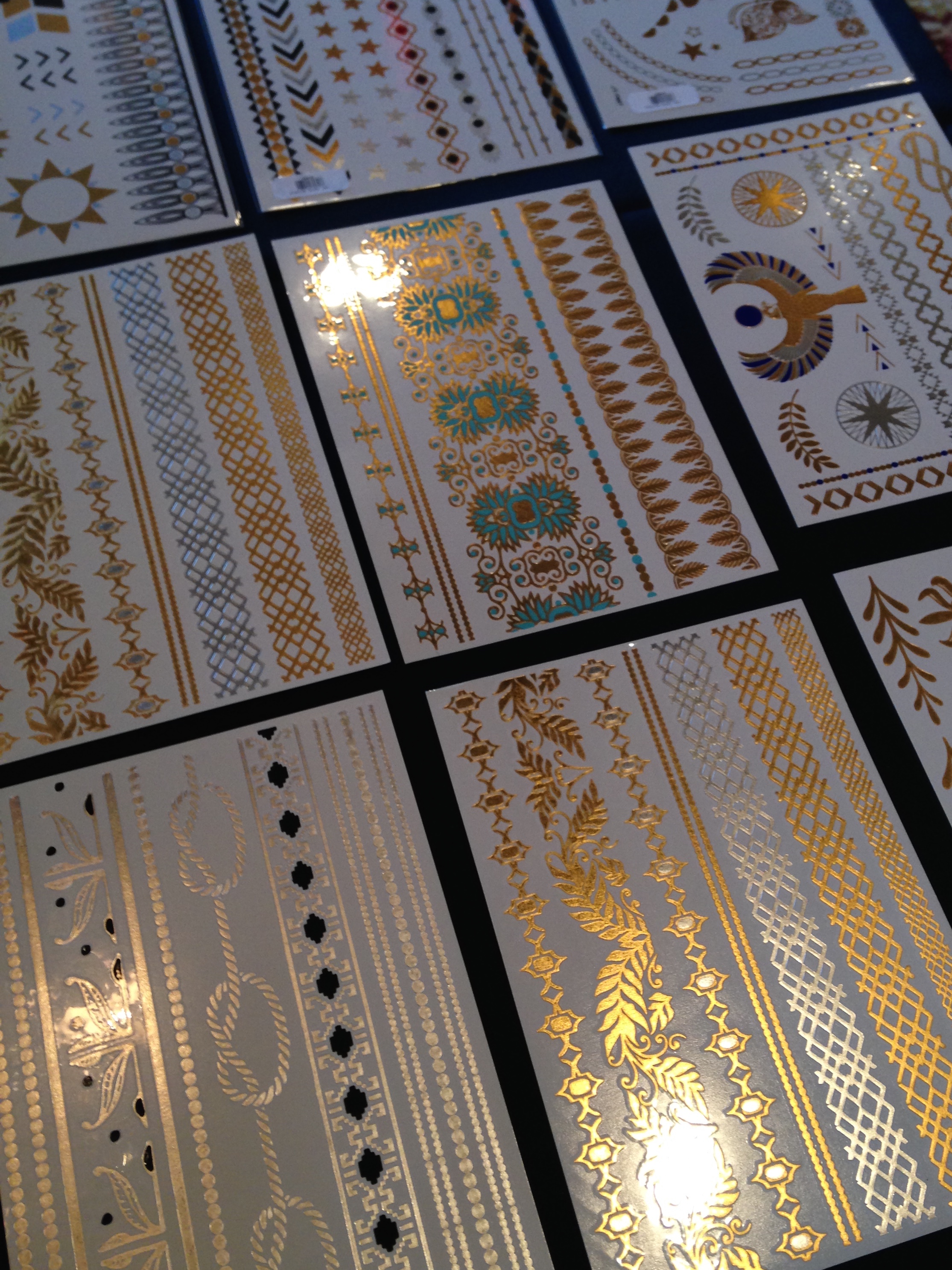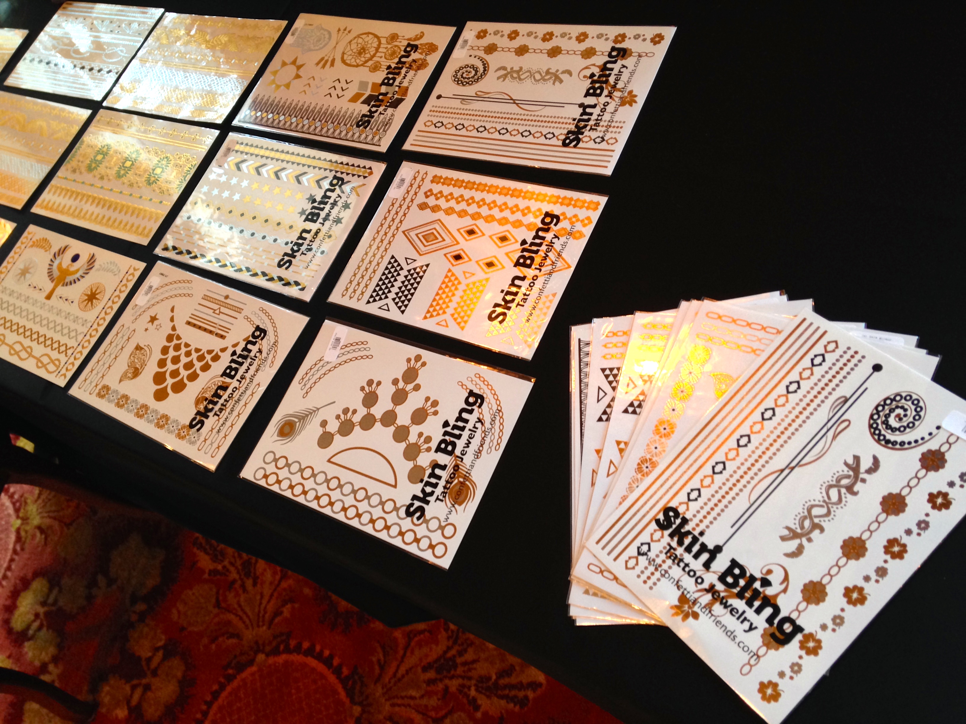 Also known as ‘Skin Bling’ and ‘Flash Tattoos’.. these are a perfect accessory to any party! Bling your friends.. bling your family.. this is one of the trendiest styles of Body Art right now. We have a huge selection of fabulous Jewelry Tattoos! Custom Logo Tattoos are available.